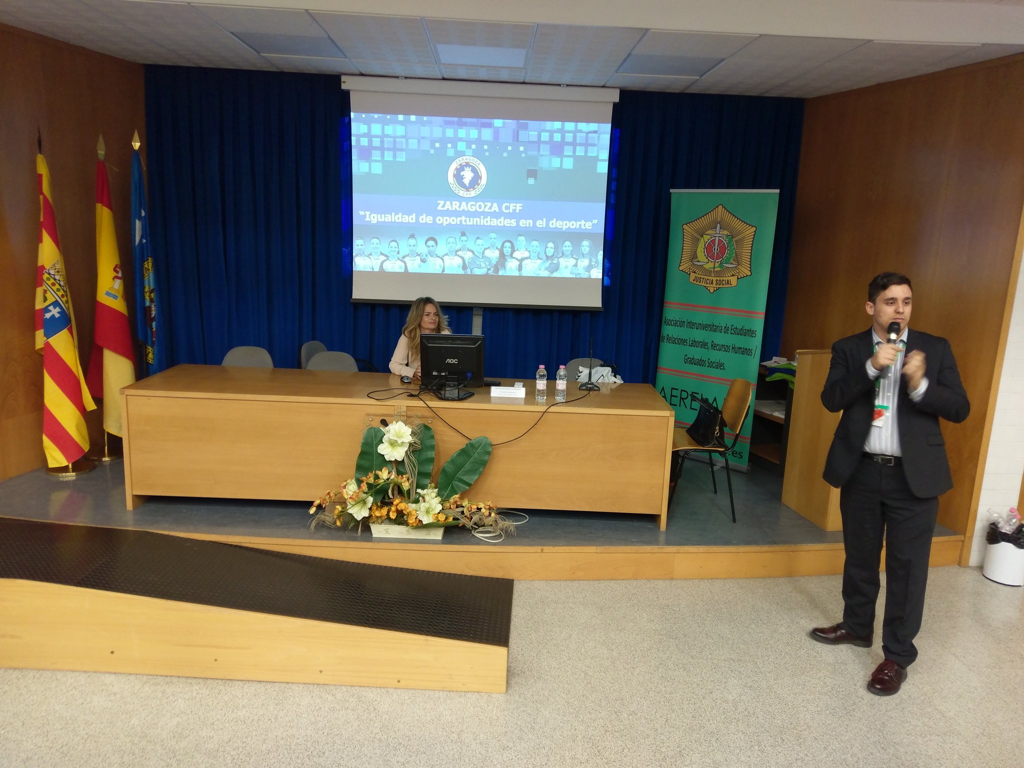 Para finalizar la jornada trabajamos sobre la desigualdad de oportunidades en el deporte de élite por razón de sexo con una ponencia realizada por parte del Zaragoza Club de Fútbol Femenino que, pese a encontrarse en primera división, cuenta con unos medios y una infraestructura muy inferior a los equipos masculinos.